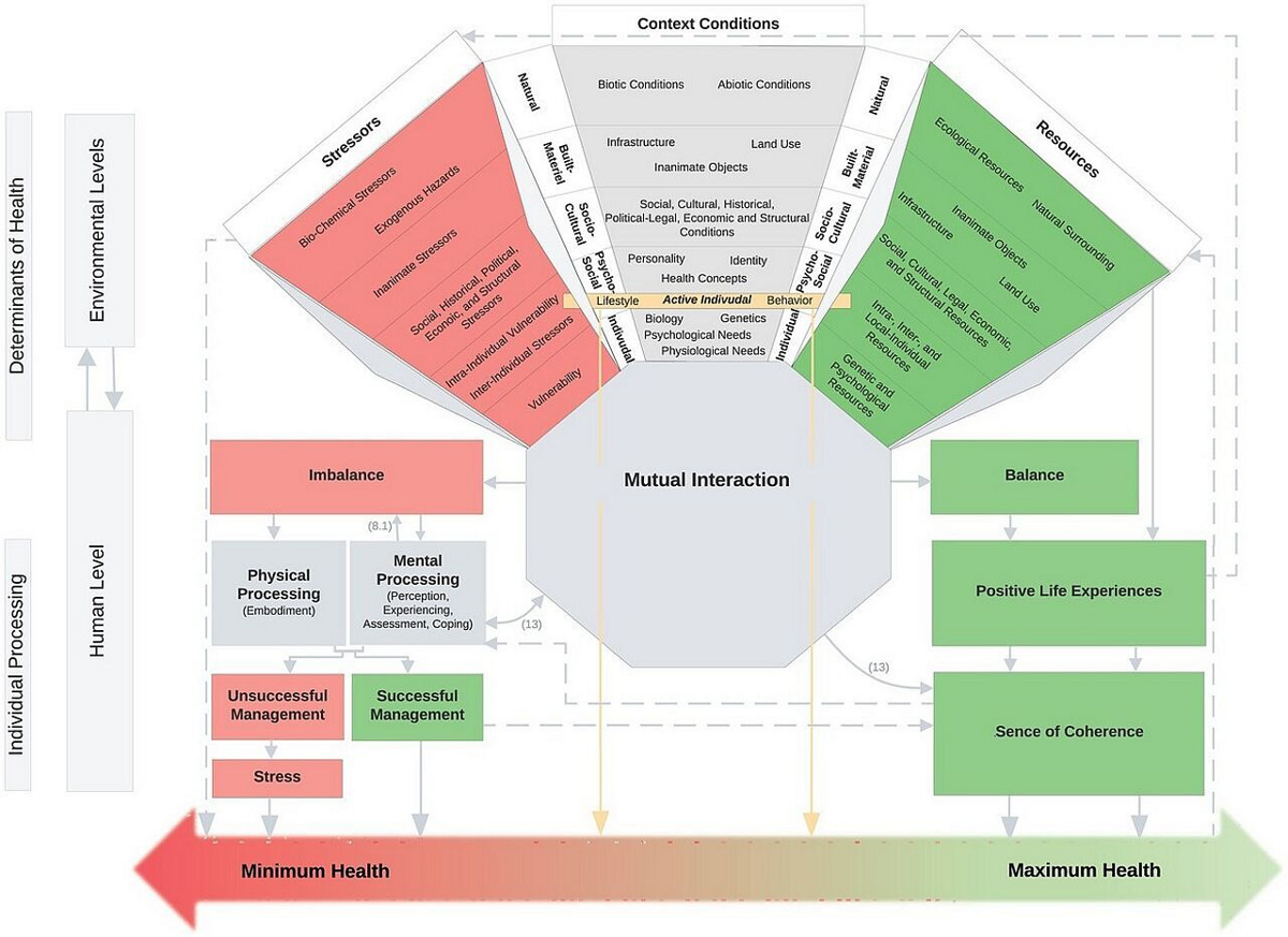 Seit mehr als vier Jahrzehnten erklärt das Salutogenese-Modell Aaron Antonovskys (1979), warum Menschen trotz Belastung gesund bleiben. Es beschrieb zudem die neue Logik eines Gesundheitskontinuums anstelle der Krankheits-Dichotomie. Bis heute erscheint die Umwelt im Salutogenese-Modell allerdings ausschließlich als Risikofaktor; mittlerweile gut beschriebene Widerstandsressourcen wie Stadtnatur oder gebaute Aufenthaltsqualität bleiben außen vor.